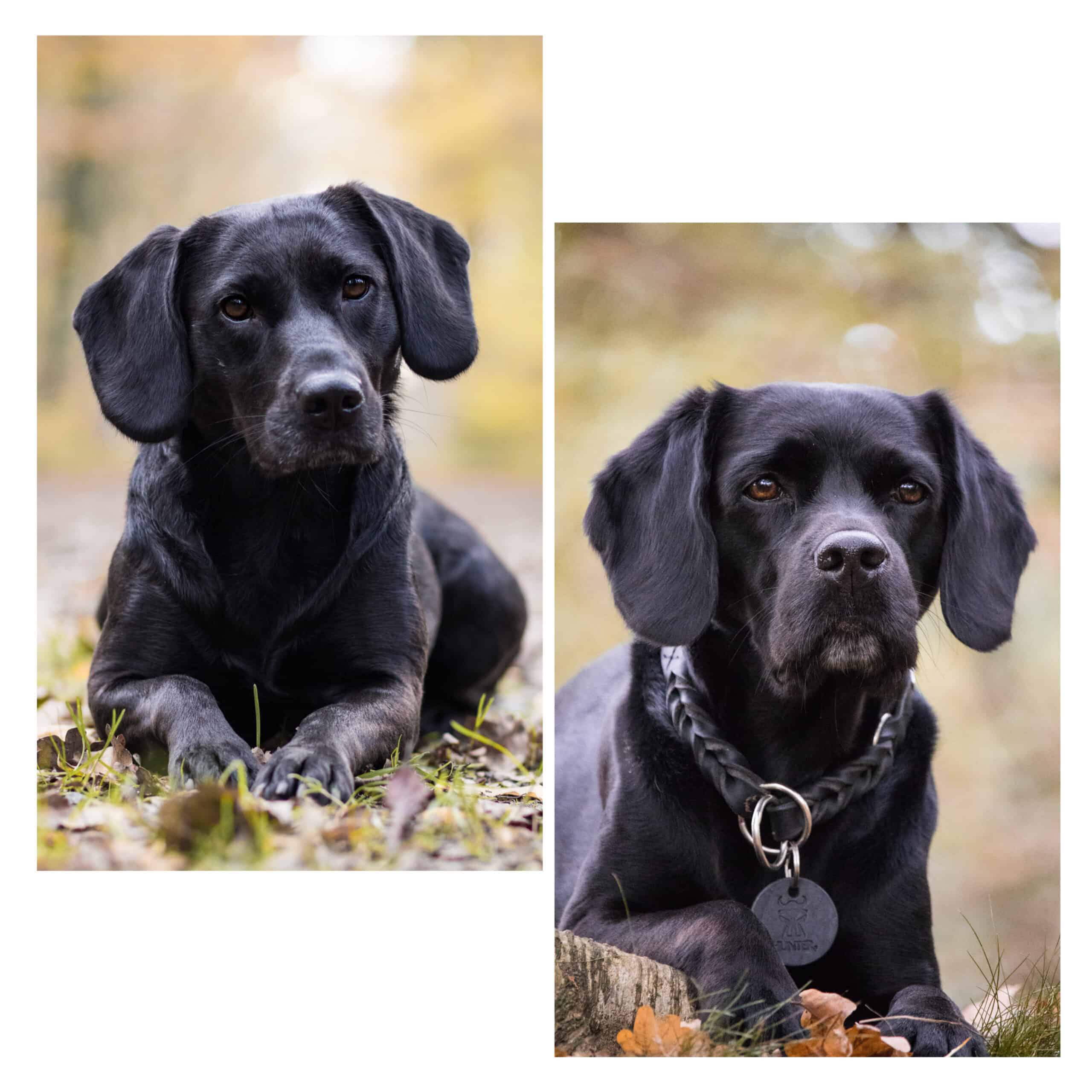 Ella ist eine ¾ Labrador-Hündin (Mama Labrador (HD/ED frei), Papa Labradoodle) und dadurch insgesamt kompakter gebaut. Der Papa Elmo ist ein über mehrere Jahre bewusst kleiner gezüchteter Labrador und HD- und ED-frei und Herzuntersucht.